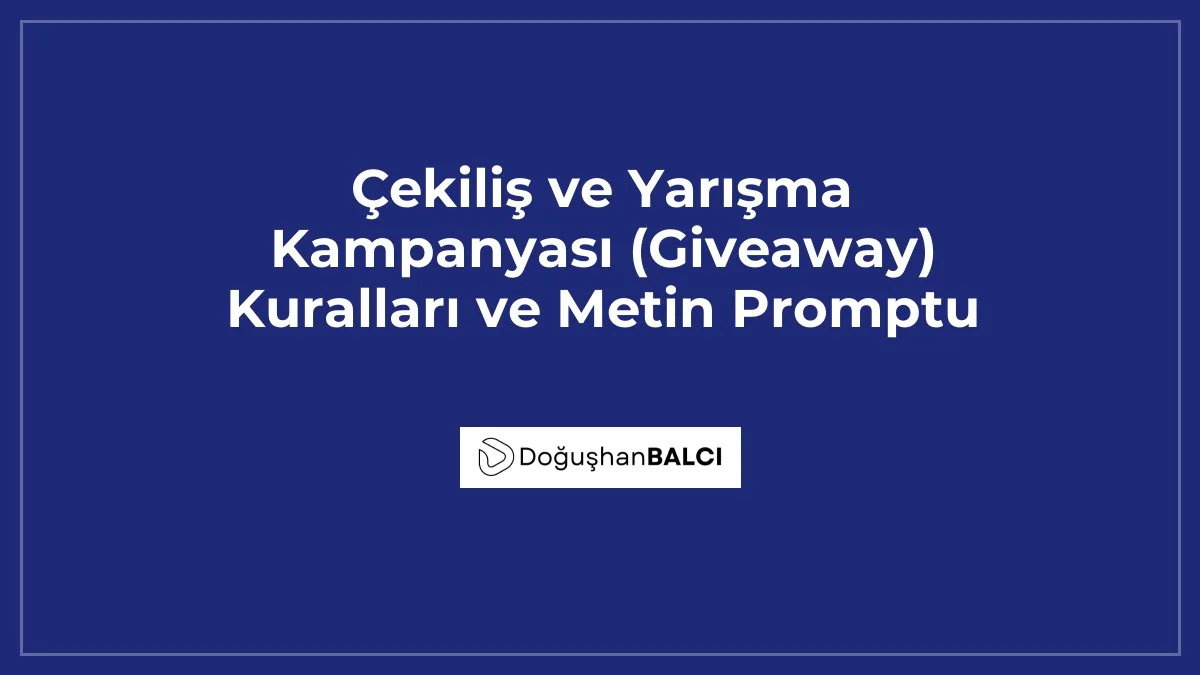 Bir marka olarak [ÜRÜN/HİZMET ADI] için çekiliş düzenliyorum. Hedef kitlem [HEDEF KİTLE TİPİ]. Çekiliş metninde şu kurallar olmalı: 1. Sayfamızı takip et, 2. Gönderiyi beğen, 3. Yoruma 3 arkadaşını etiketle. Metin dili [TON/STİL - Örn: Samimi ve Heyecanlı] olmalı. Metnin sonuna 5 adet uygun hashtag ekle. Lütfen bu kampanya için 150 kelimeyi geçmeyen, etkileşim odaklı, emojilerle zenginleştirilmiş bir Instagram gönderisi metni yaz.Yukarıdaki prompt içerisinde parantez içindeki değişkenleri kendi kampanyanıza göre düzenlemeniz yeterlidir. Özellikle 'TON' kısmına yazacağınız ifadeler, metnin karakterini belirler. Profesyonel sonuçlar almak için markanızın dilini (ciddi, eğlenceli, kurumsal) prompta yansıtmayı unutmayın. İçeriğinizin özgünlüğü, yapay zekadan aldığınız metni kendi cümlelerinizle harmanlamanızla daha da artacaktır.