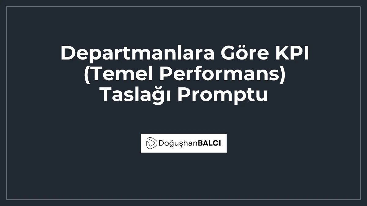 Günümüzde gelişmiş yapay zeka modelleri, departmanlara özel KPI taslakları oluşturmada oldukça başarılı sonuçlar vermektedir. Aşağıdaki prompt, değişkenleri doldurarak kendi şirket yapınıza uygun metrikleri üretmenizi sağlayacaktır.