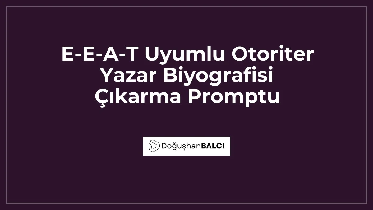 Aşağıdaki bilgilerle bir yazar biyografisi oluştur. Biyografi, E-E-A-T (Deneyim, Uzmanlık, Otorite, Güvenilirlik) standartlarına uygun olmalı. 1. Yazar Adı: [İsim] 2. Uzmanlık Alanı: [Örn: Kardiyoloji veya Finansal Analiz] 3. Deneyim Süresi: [Sayı] yıl. 4. Akademik Başarılar/Sertifikalar: [Detaylar]. 5. Önceki Yayınlar/Projeler: [Önemli başarılar]. 6. Yazım Dili: Profesyonel, güven veren ve otoriter. 7. Hedef: Okuyucuda güven oluşturmak ve Google'a yazarın uzmanlığını kanıtlamak. Lütfen yazarın neden bu konuda içerik ürettiğini açıklayan bir cümle ile başla.Yazar Otoritesi Neden Önemlidir?