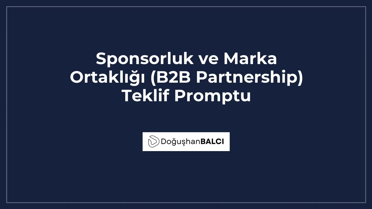 Aşağıdaki AI promptu, iş ortağı adaylarınıza göndereceğiniz etkili teklifleri saniyeler içinde taslaklamanıza yardımcı olacaktır. [Marka_Adi] alanına kendi markanızı, [Partner_Adi] kısmına hedeflediğiniz şirketi, [Proje_Detayi] alanına ise gerçekleştirmek istediğiniz iş birliğinin kısa bir özetini yazarak kullanabilirsiniz.
