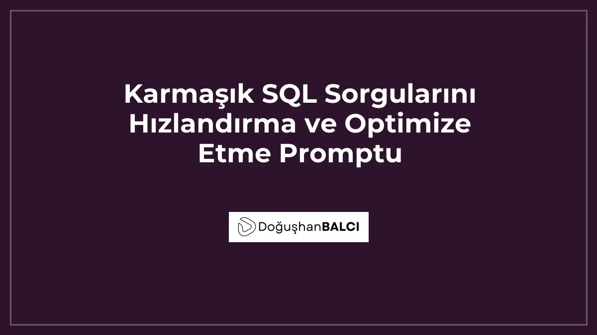 Yapay zekadan verim almak, doğru komutları vermekten geçer. Profesyonel düzeyde sql query optimize etme sonuçları almak için, veritabanı şemasını ve sorgu senaryosunu yapay zekaya detaylıca sunmalısınız. Bu sayede, yavaş çalışan sql sorgusu sorunlarınız için anlık çözümler üretebilirsiniz. Kullanacağınız veritabanı sorgu promptu yapısı, sorgunun amacını, tablolar arasındaki ilişkileri ve mevcut performans metriklerini içermelidir. Başarılı bir chatgpt sql düzeltme süreci, yapay zekanın veritabanı motorunuzun dilini (MySQL, PostgreSQL, MSSQL) anlamasıyla başlar. Aşağıdaki örnek prompt yapısını kullanarak, karmaşık sorgularınızı daha okunabilir ve hızlı bir formata dönüştürebilirsiniz. Bu prompt, profesyonel standartlarda yazılmış olup, sorgu performansını artıracak en iyi pratikleri uygulamak üzere tasarlanmıştır.