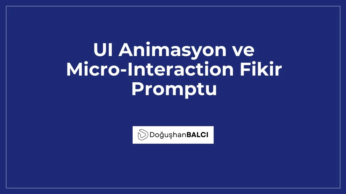 Bir UX tasarımcısı rolünü üstlen. {ELEMENT_ADI} için yaratıcı ve modern animasyon etkileşimleri öner. Animasyon şu özelliklere sahip olmalı: {HIZ_EGRI_TURU}, {ANIMASYON_SURESI} ms süresinde gerçekleşmeli. Ayrıca bu animasyonun kullanıcıya {VERILMEK_ISTENEN_MESAJ} duygusunu hissettirmesini istiyorum. Bu etkileşimin CSS/Framer Motion mantığını adım adım açıkla.Yukarıdaki promptta yer alan {ELEMENT_ADI}, {HIZ_EGRI_TURU}, {ANIMASYON_SURESI} ve {VERILMEK_ISTENEN_MESAJ} alanlarını kendi projenizin ihtiyaçlarına göre doldurarak, özel animasyon kurguları elde edebilirsiniz.